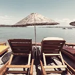 Hotellet erbjuder sina gäster solstolar, vilostolar och parasoll.